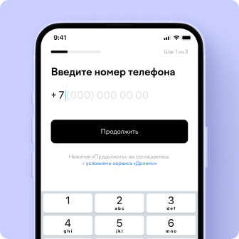 Для покупки Долями не нужны документы — только номер телефона и данные карты для оплаты.